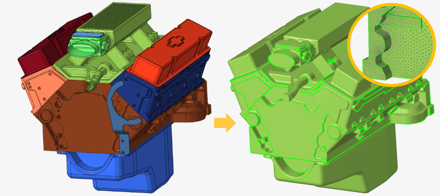 流体解析専用に開発された統合GUI環境HyperWorks-CFDは、直感的で手戻りの無い操作環境を提供し、これらの作業を素早く実施できます。CFDモデリングに欠かせないラッピング機能※は、CADの稜線を保ちより再現性が向上しました。また、HyperWorksの最新メッシュ生成技術により、大規模なモデルでも自動でエラーなくメッシュ生成が可能です。